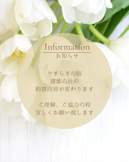 やすらぎの宿 双葉の杜の約款内容をご変更致します。 ご理解、ご協力の程宜しくお願い致します。